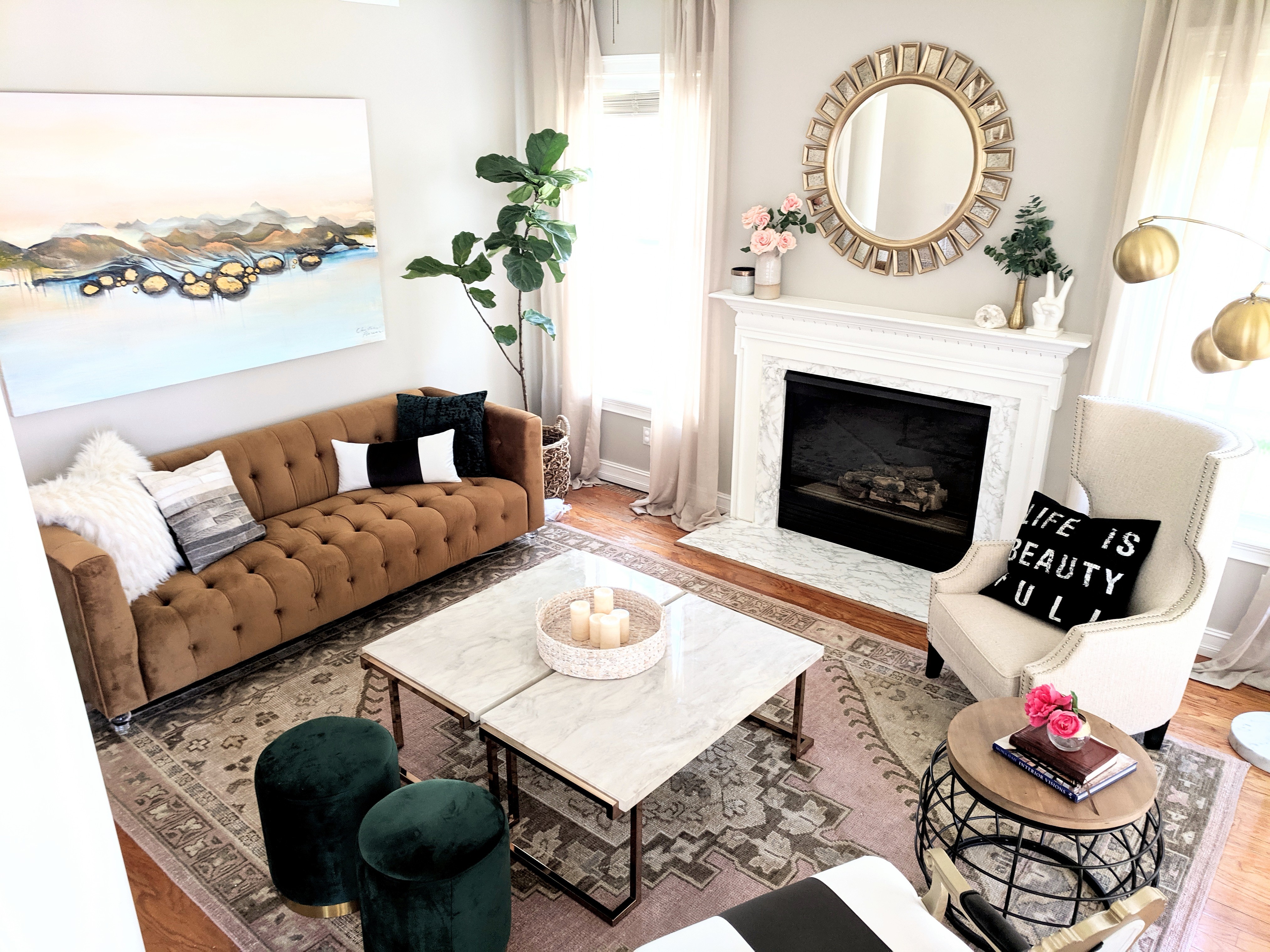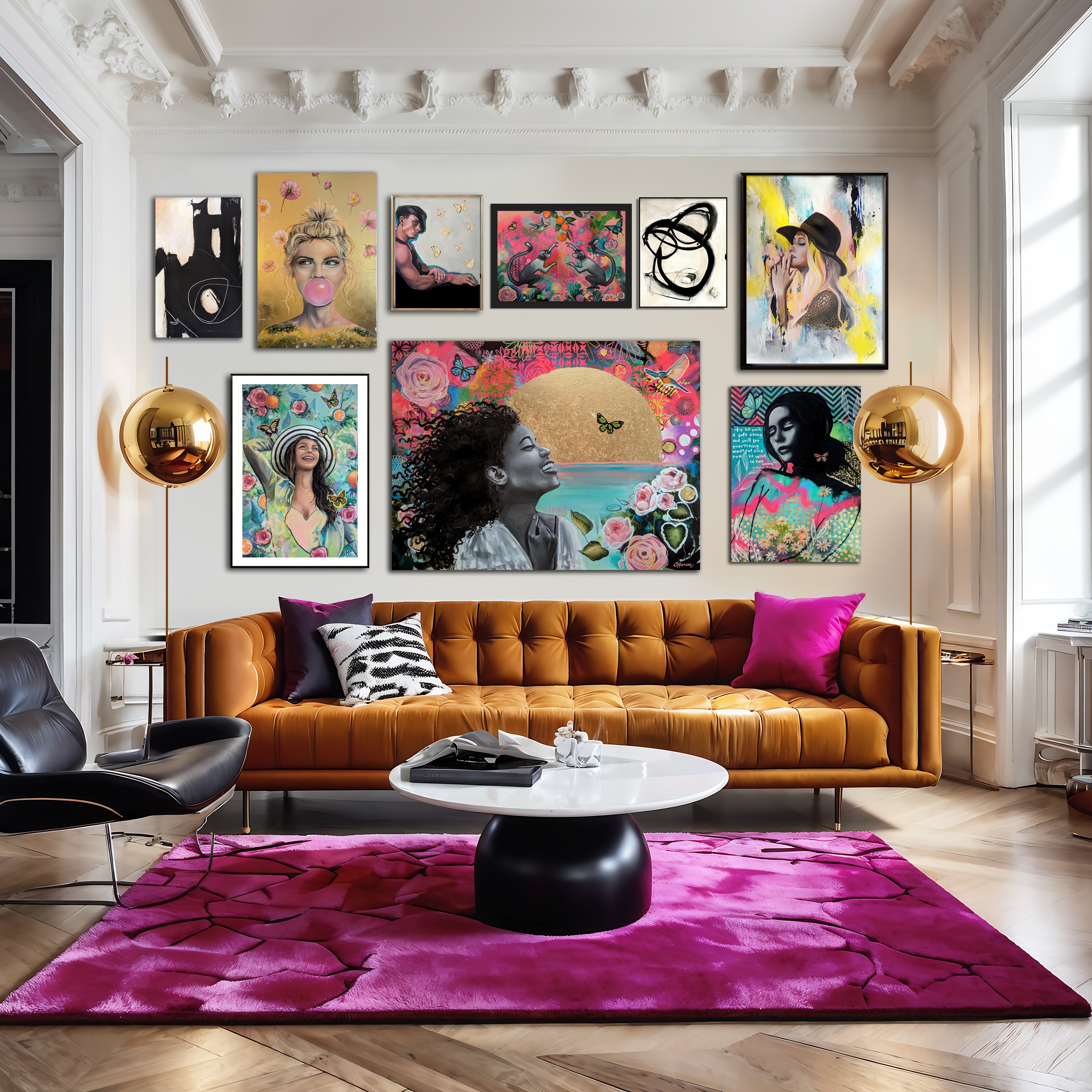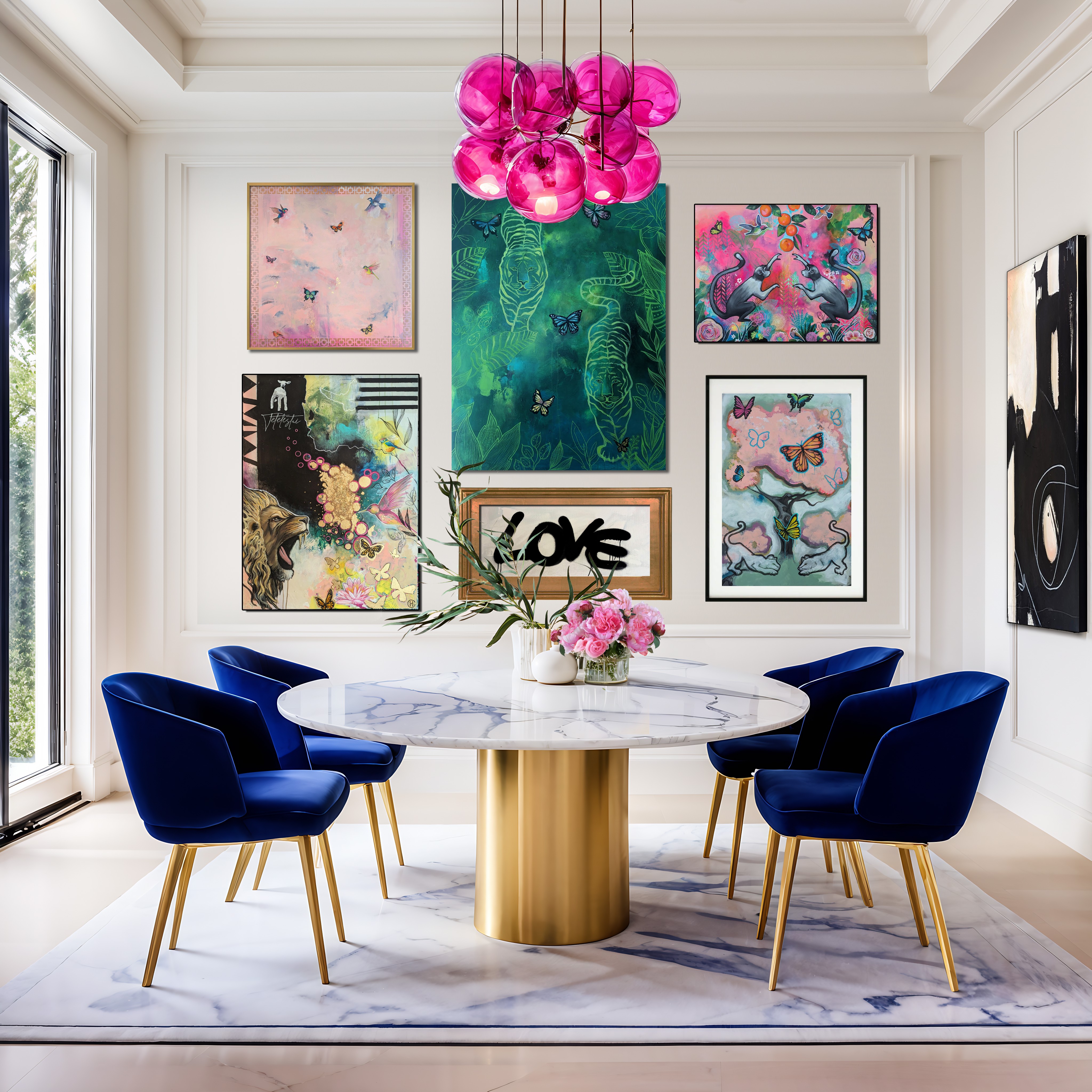 I think sometimes the art and design worlds can take themselves too seriously. I’m a big proponent of artwork and interiors being fun and expressive. Some art critics only give credibility to artwork that makes a bold political or generational statement. In art school I was told that my art was “fine, if I wanted to paint for hotels” which was a biting insult. That held me back for a long time because it wasn’t in my heart to paint for “shock and awe” or for the purpose of instigating debate. To be clear, I do think that type of art is very important and I love that artists can make a difference with their voices and their unique ways of expression; however, I don’t think that is the only way to create good art. Much of my art is created to highlight the beauty of color, texture, people, animals, and nature. It’s fulfilling to me when it brings joy to my clients. I love that art and interior design can make a person feel excited, peaceful, joyful, and even safe in their space.