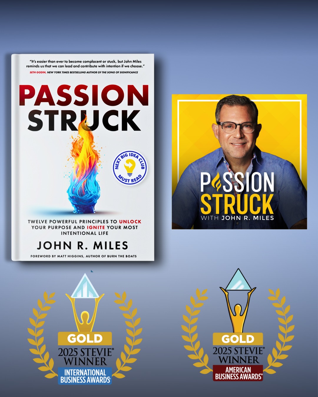 My first book, Passion Struck: Twelve Powerful Principles to Unlock Your Purpose and Ignite Your Most Intentional Life (Post Hill Press, 2024), became a #1 international bestseller, a Next Big Idea Club Must-Read, and the winner of more than twenty international awards, including the Gold Stevie Award for Best Business Book.