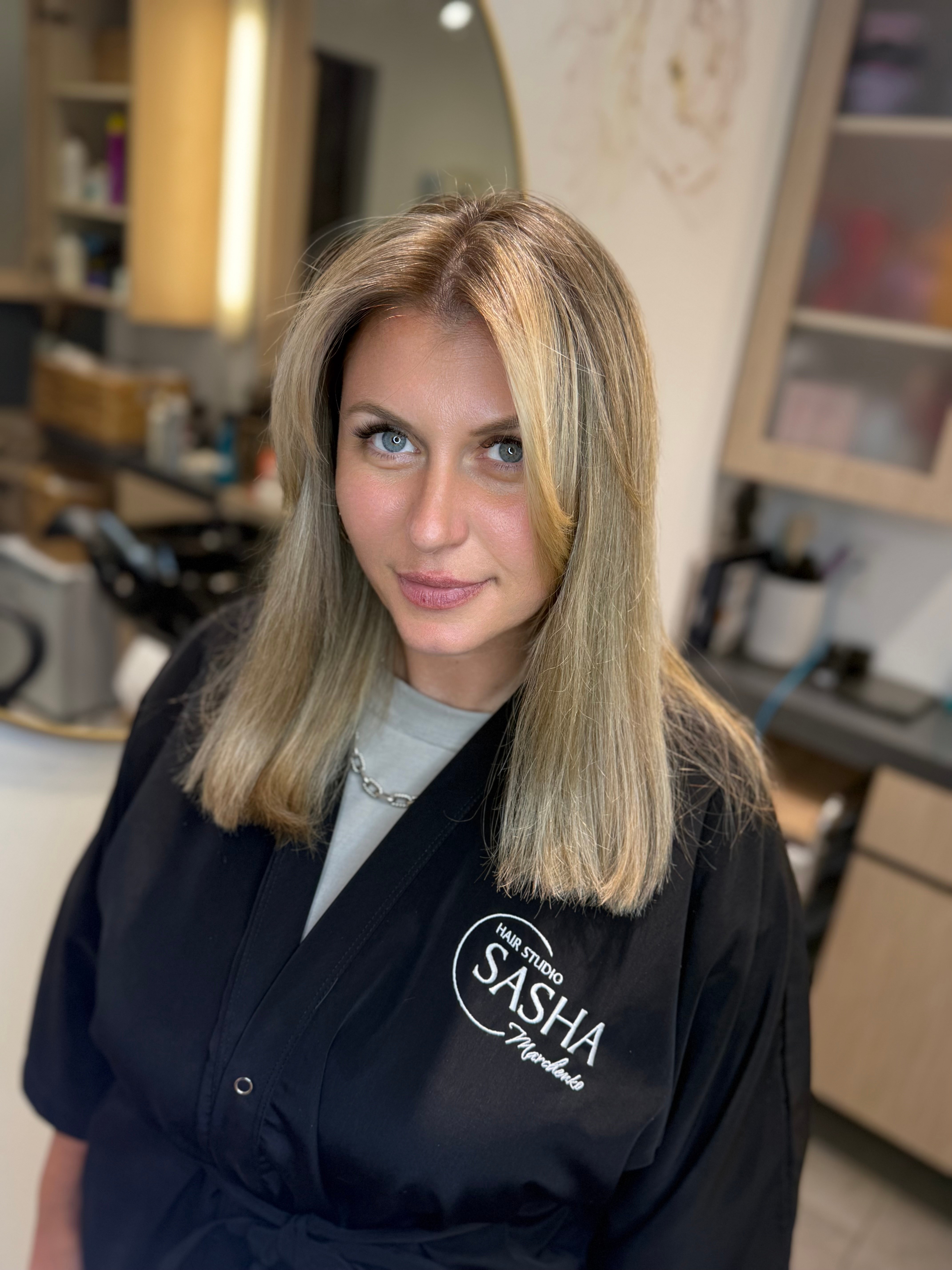 My name is Oleksandra Marchenko, and I am the founder of Sasha Hair Studio in Oldsmar, Florida. I have been working in the beauty industry more than 10 years, specializing in blonde transformations, nano hair extensions, and advanced hair restoration treatments.