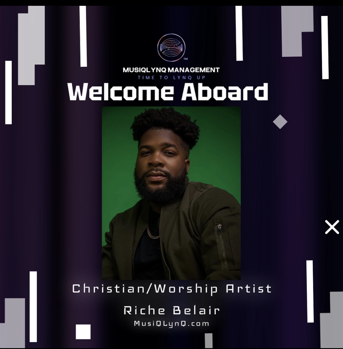 Founder & CEO Quinton Daniels has formulated a Music Management Company focusing on Artist Development Est. 2025. Quinton was born and raised in Cincinnati, Ohio. He is a husband and a father who values family. He recently held the position of Executive Vice President, of A&R at an Independent Record Label | where he continued to learn more about the industry and value of mentorship. Alongside that, Quinton is a Christian Artist, Ghostwriter, Producer, Mixing Engineer, and Musician. Quinton now wants to pay it forward and help many artists grasp the essential knowledge of the music process, which is why “MusiQLynQ” was created. We’re driven to help Independent Christian Artists and Musicians reach their full potential. Our company strongly advocates for the success of creatives and wants to create a safe haven for Christian Creatives to develop and trust. MusiQLynQ has recently welcomed Christian artists Ryan Chew, Richie Belair, and Dizzy Livv. These exceptional creatives are making significant contributions to the kingdom of God. We’re continuously expanding and will persist in attracting like-minded creatives to our community.
