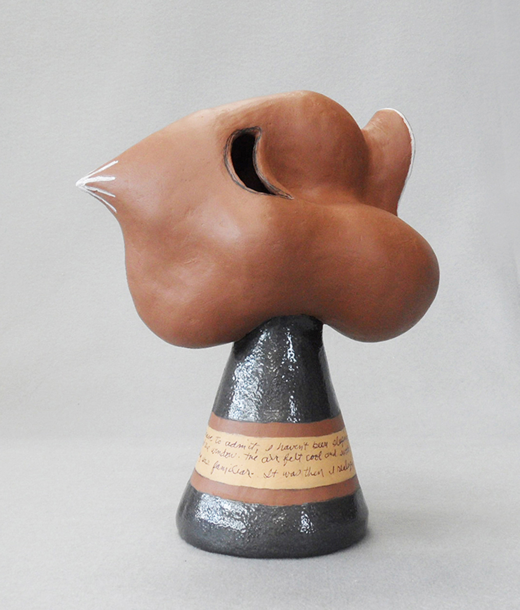 I have taught ceramic sculpture once a week for the past 43 years but rarely did any ceramic sculptures of my own until about six years ago. I struggled with that , with finding my own personal images. Last year when five of my ceramic sculptures were accepted into the Skyway show at the Tampa Museum it was much needed confirmation that I was doing okay.