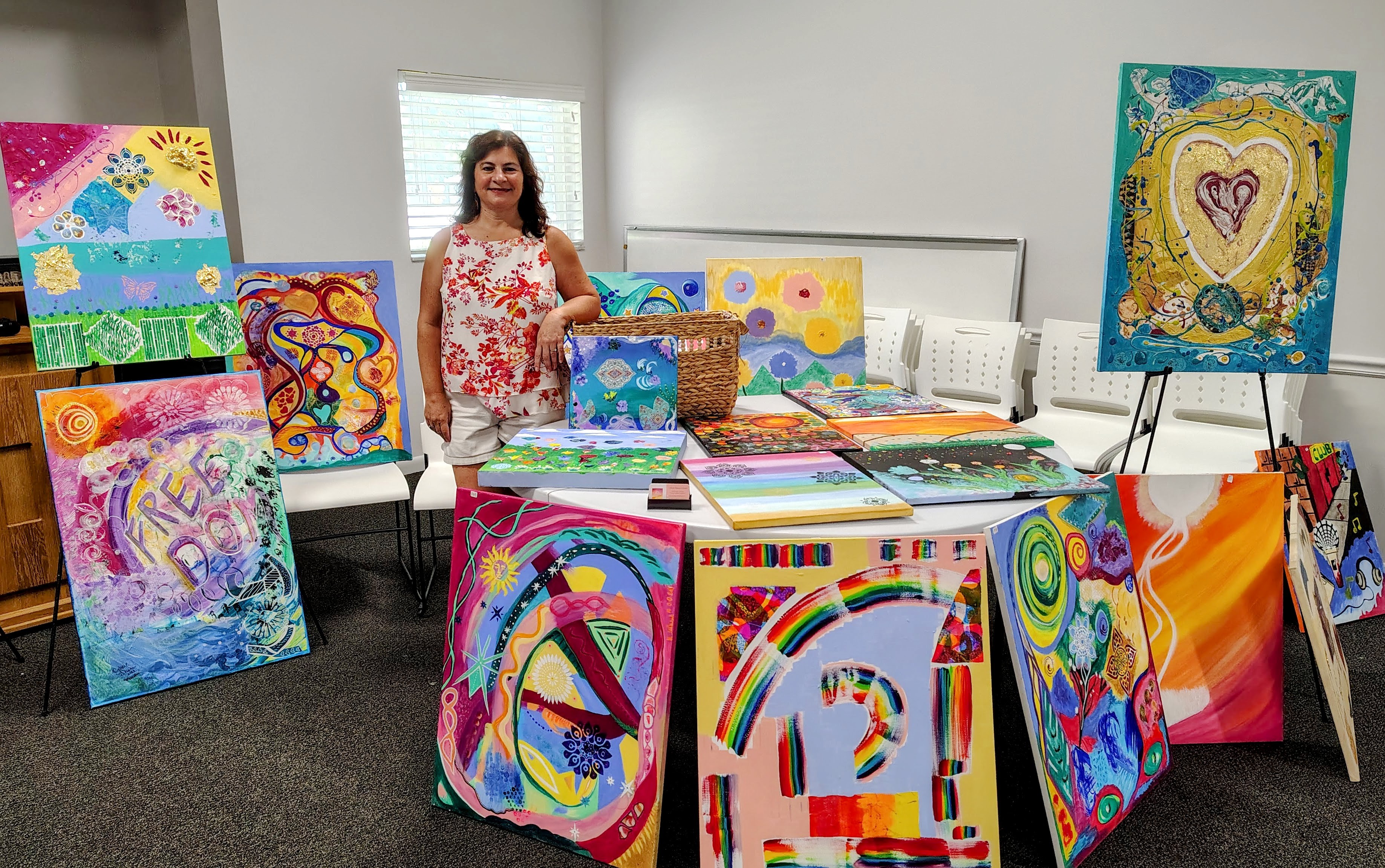That would be doing art, painting, collage, mixed media, really any kind of art. I love it! Especially when I get into the acrylic painting that I love to do. The time just goes by. It’s very meditative in a way, and brings me so much peace and joy!