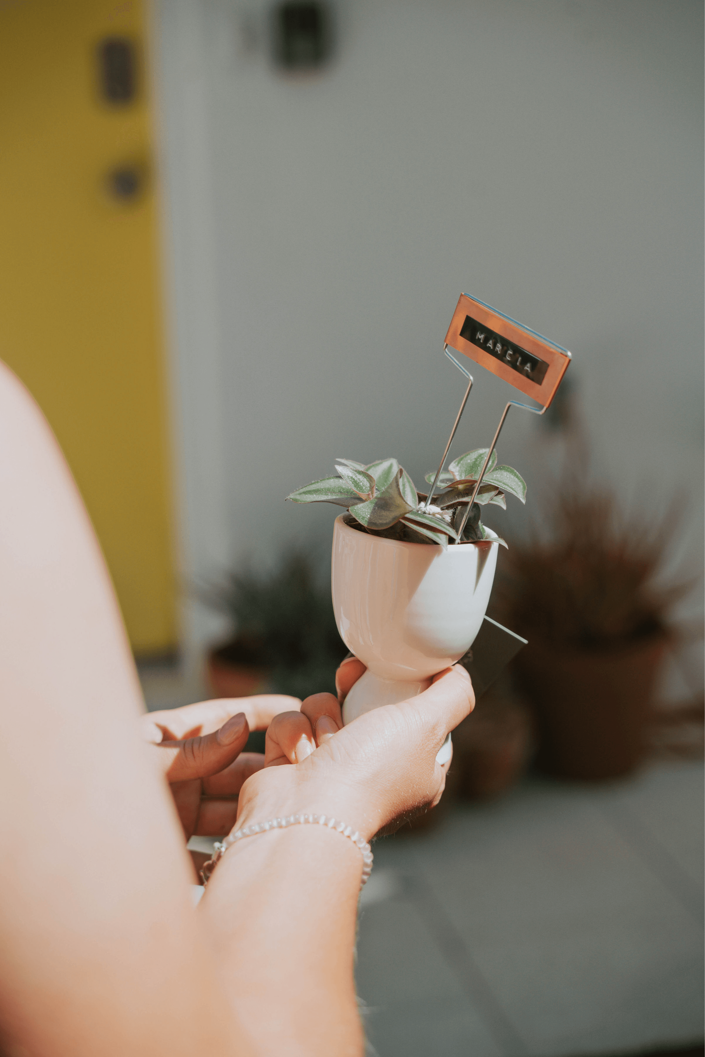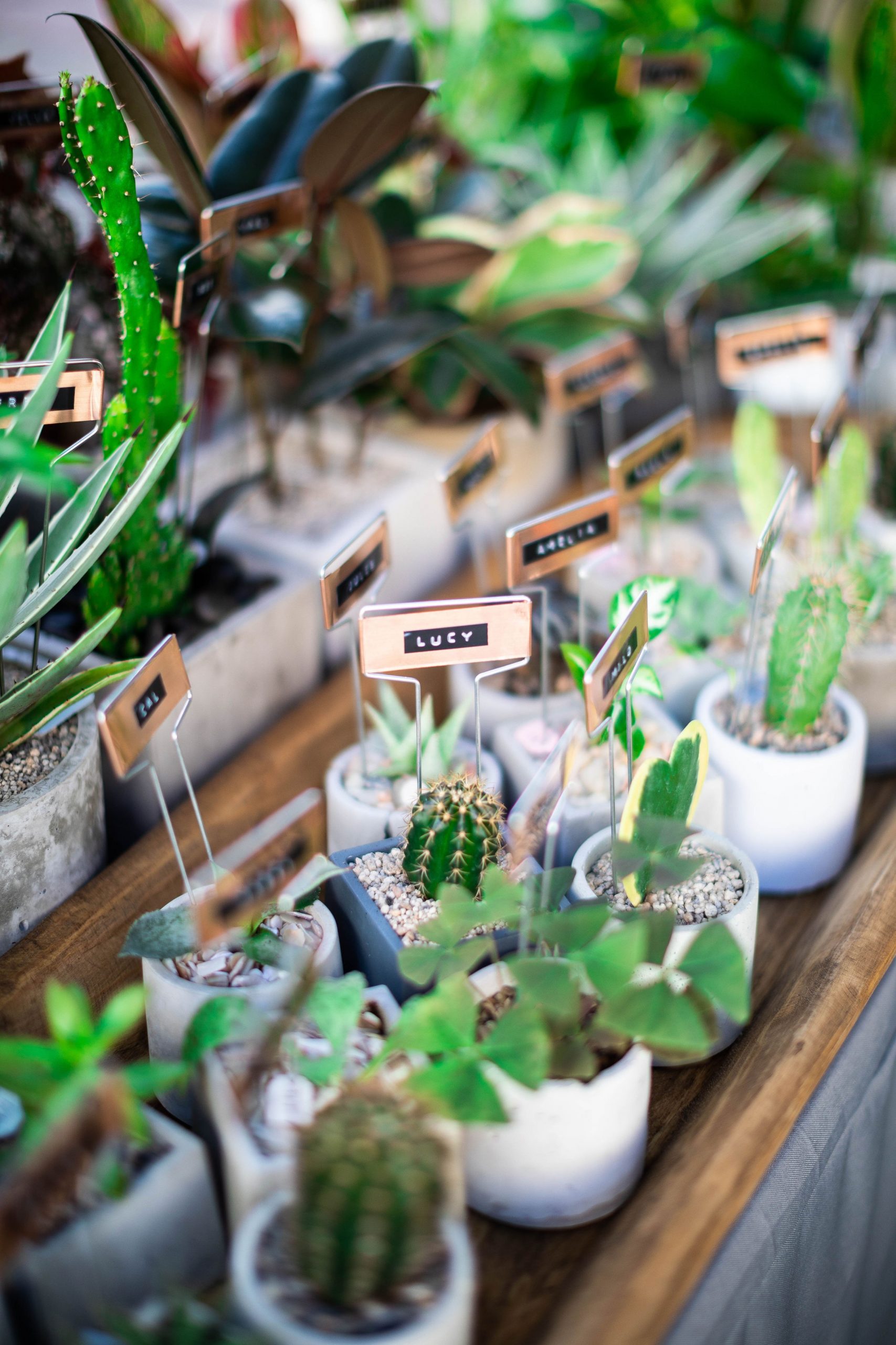 All of Wally’s plants are lovingly potted in a unique vintage vessel, a more traditional planter, or one of our handcrafted organic concrete planters and named with a copper tag! Naming plants creates a personal and emotional connection for our customers. When the plants are named, they feel more like companions rather than just decor. It also adds a sense of charm and personality to the shopping experience, making each plant unique and memorable. Names also encourages care and long-term satisfaction of their new green “friend”.