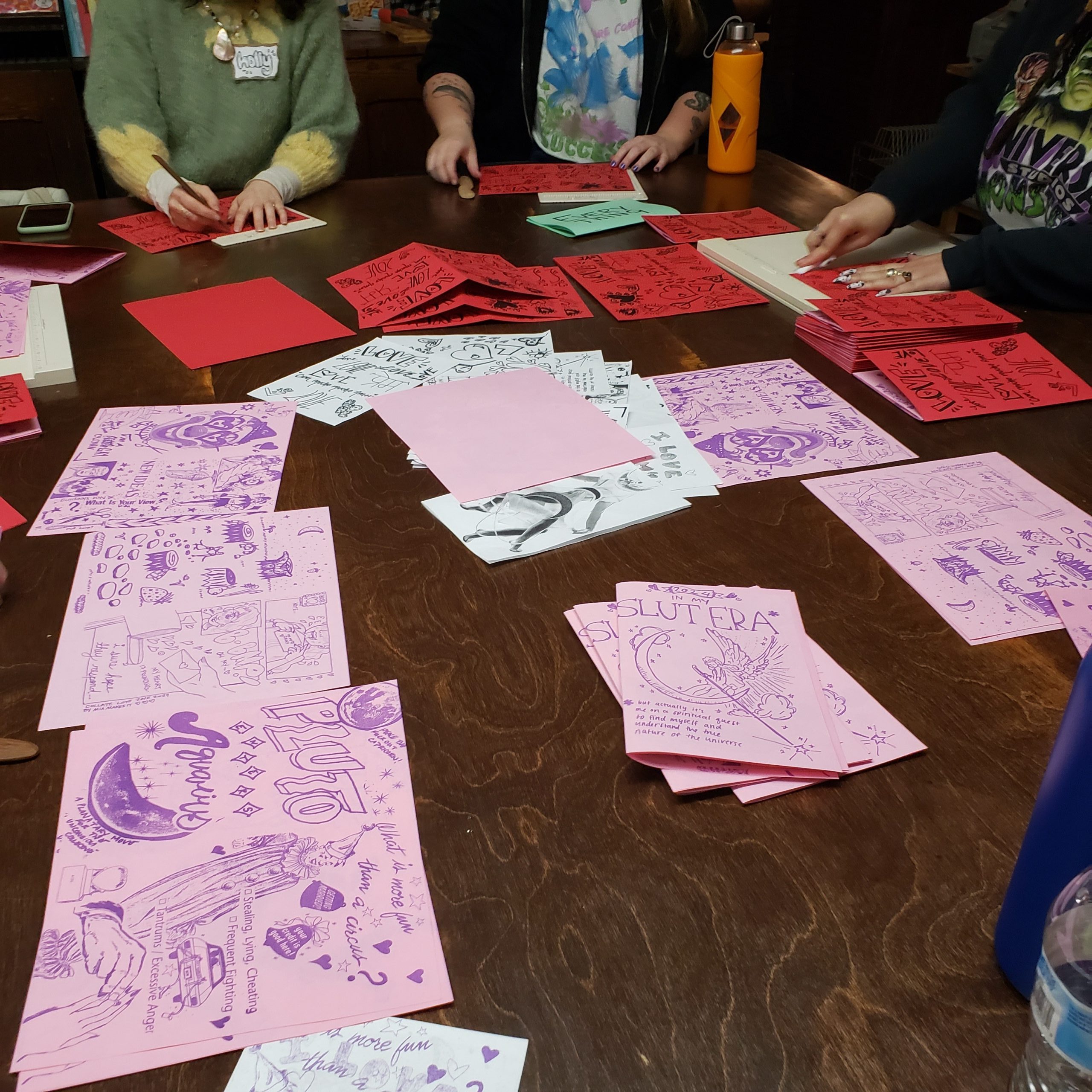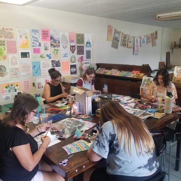 One major shift that occurred between my practice in college versus now is a shift toward community and the collective. In school, I was a lonely person who made prints and illustrations from a place of pain and sadness. Now, I conduct workshops and work together with the community to create. Luckily, facilitating and coordinating are two things I am good at and that I also enjoy. So, the idea came up to teach art workshops in the community. I had taught a couple of workshops at a gallery I was previously employed by, and I really enjoyed it.