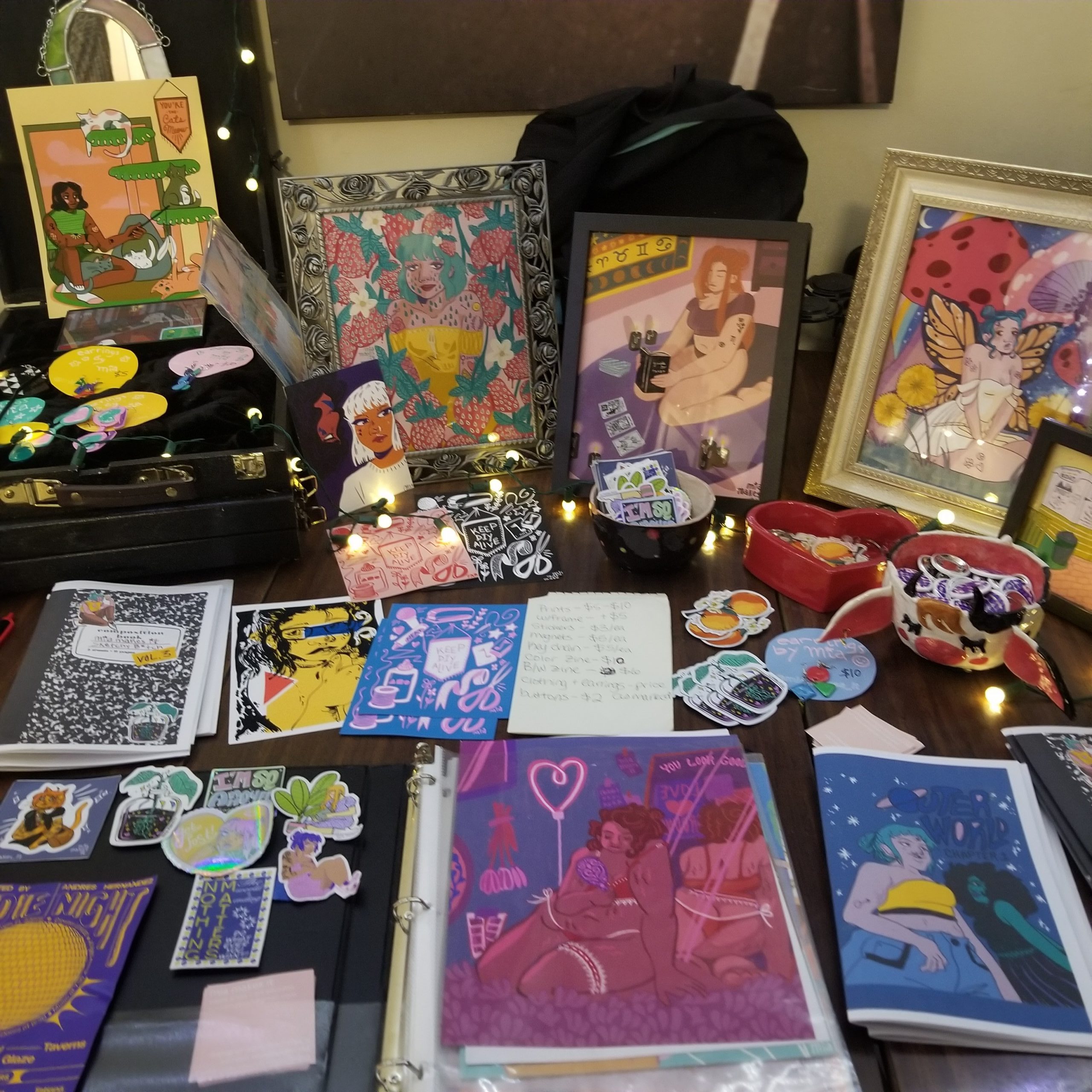 Since then, I have worked in multiple galleries and museums and have shown my work across town. I am still a student at heart – I love learning, and I have many hobbies and interests. I continued to make comics, embroider, and make ceramics, and I have even learned to code websites. (Check mine out if you want: miamakesit.art)