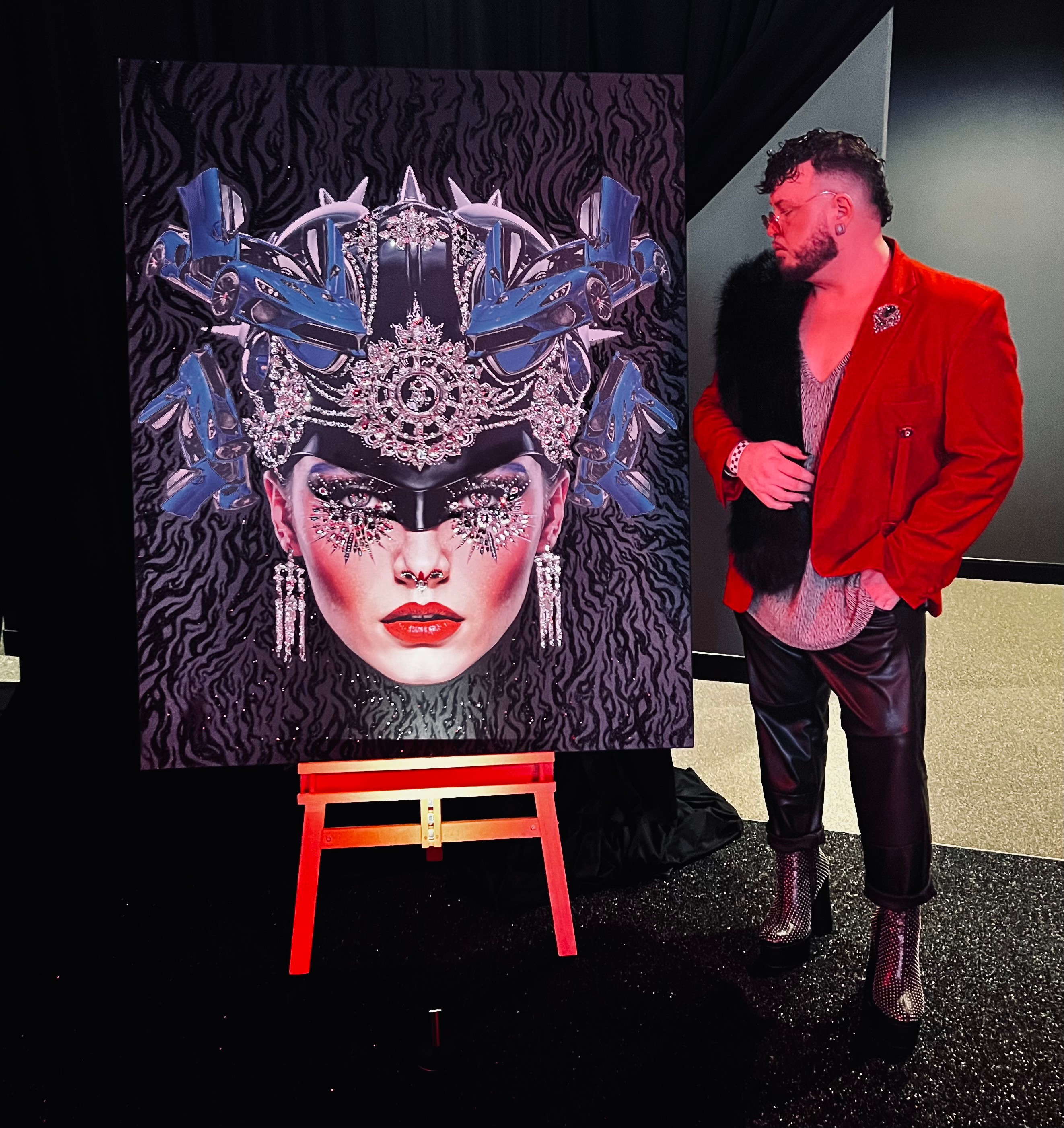 Everyone gets the crystals, the chaos, the couture energy on the canvas—but what they don’t see is the universe I’ve been quietly constructing in my head since I was a kid. It’s this whole mental kingdom where every weird idea, every “too much” feeling, every misfit moment has somewhere glamorous to live. That’s where my courage comes from, my style, my sense of humor.
