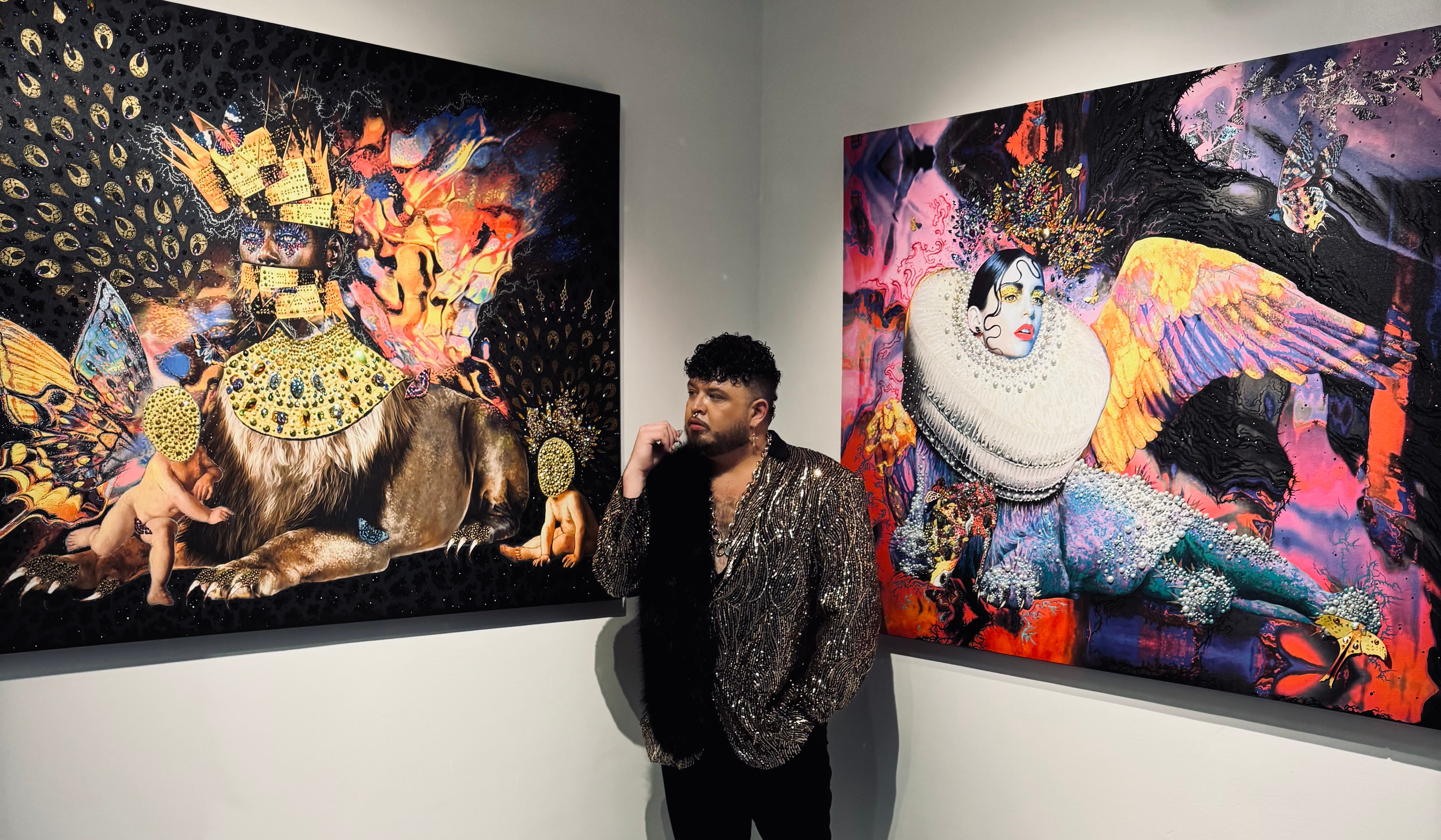 I’m Sir Nicholas Lucius — think of me as a visual alchemist with a couture obsession. I’m a mixed-media contemporary artist who treats canvases like an Opera House: Think paint, crystals, metal leaf, textiles, found objects… if it shines, screams, or tells a story, it probably ends up in my work.